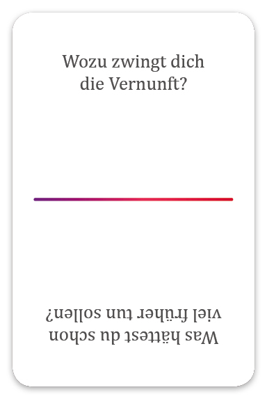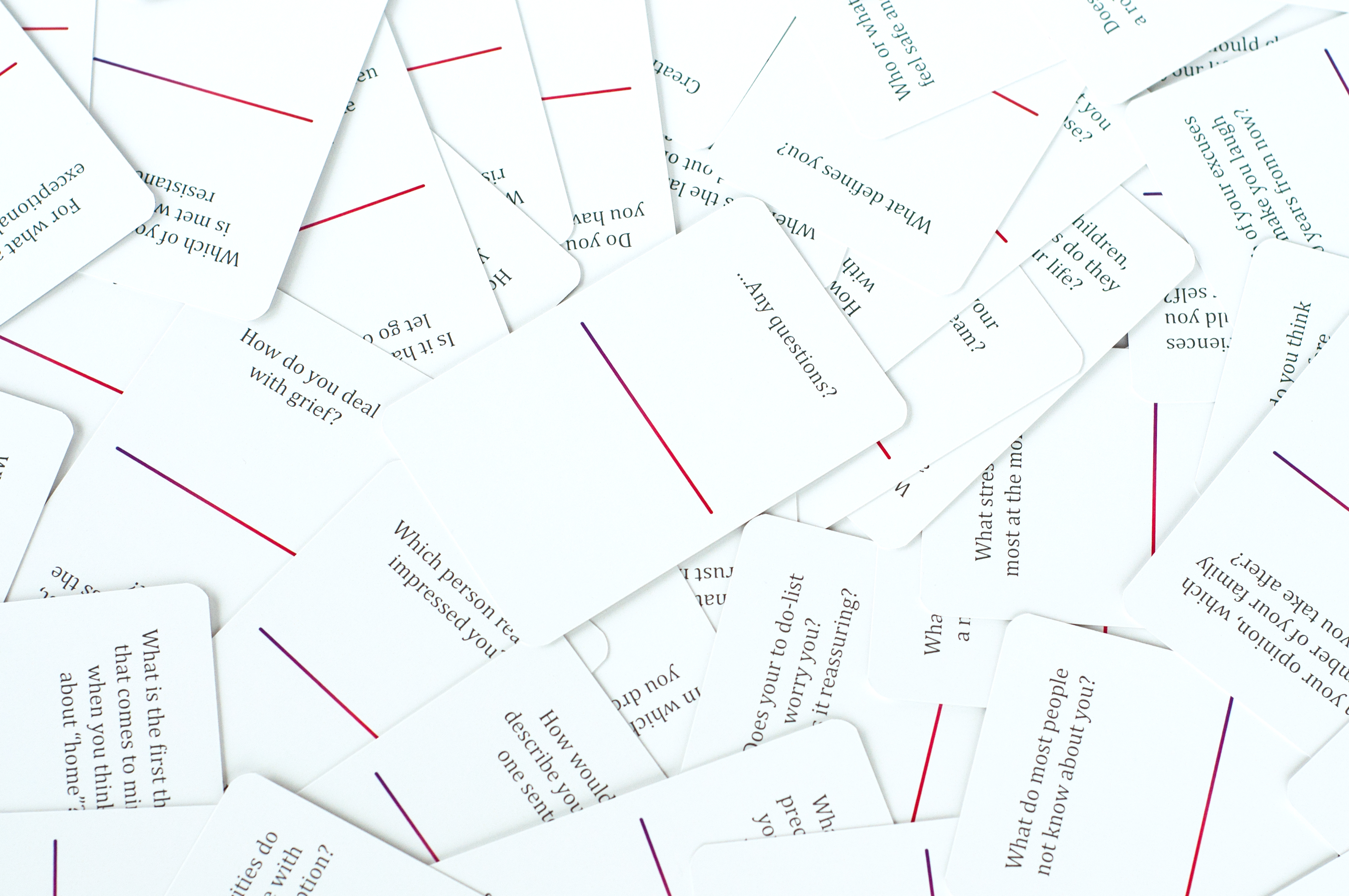 Laut einer Studie des amerikanischen Psychologen Arthur Arons können sich wildfremde Menschen mit seinen 36 Fragen ineinander verlieben. Wir sehen Fragen als Herz des Dialogs und freuen uns, wenn ihr euch mit unseren 196 Fragen in mittlerweile zwei Editionen näher kommt. Es muss ja nicht gleich Liebe sein.